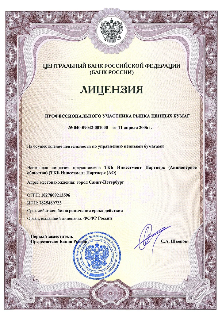 Выдана ФСФР России 11 апреля 2006 г. за № 040–09042–001000, срок действия Лицензии — без ограничения срока действия.