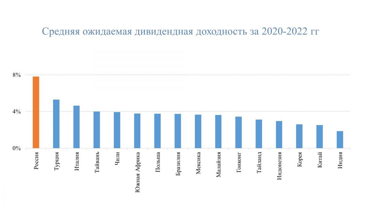 Ожидаемая дивидендная доходность российского рынка является самой высокой среди крупных стран в мире