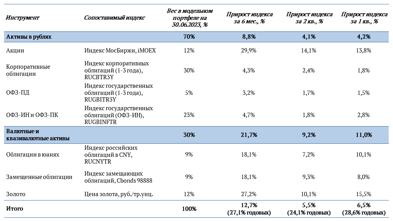 Результаты по модельному портфелю
