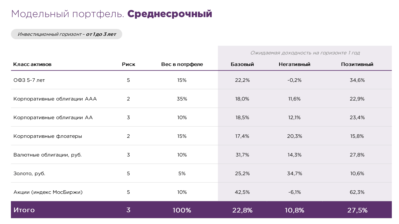 Мы рассматриваем портфельные решения, отражающие наш взгляд на рынок и отвечающие различным инвестиционным целям.