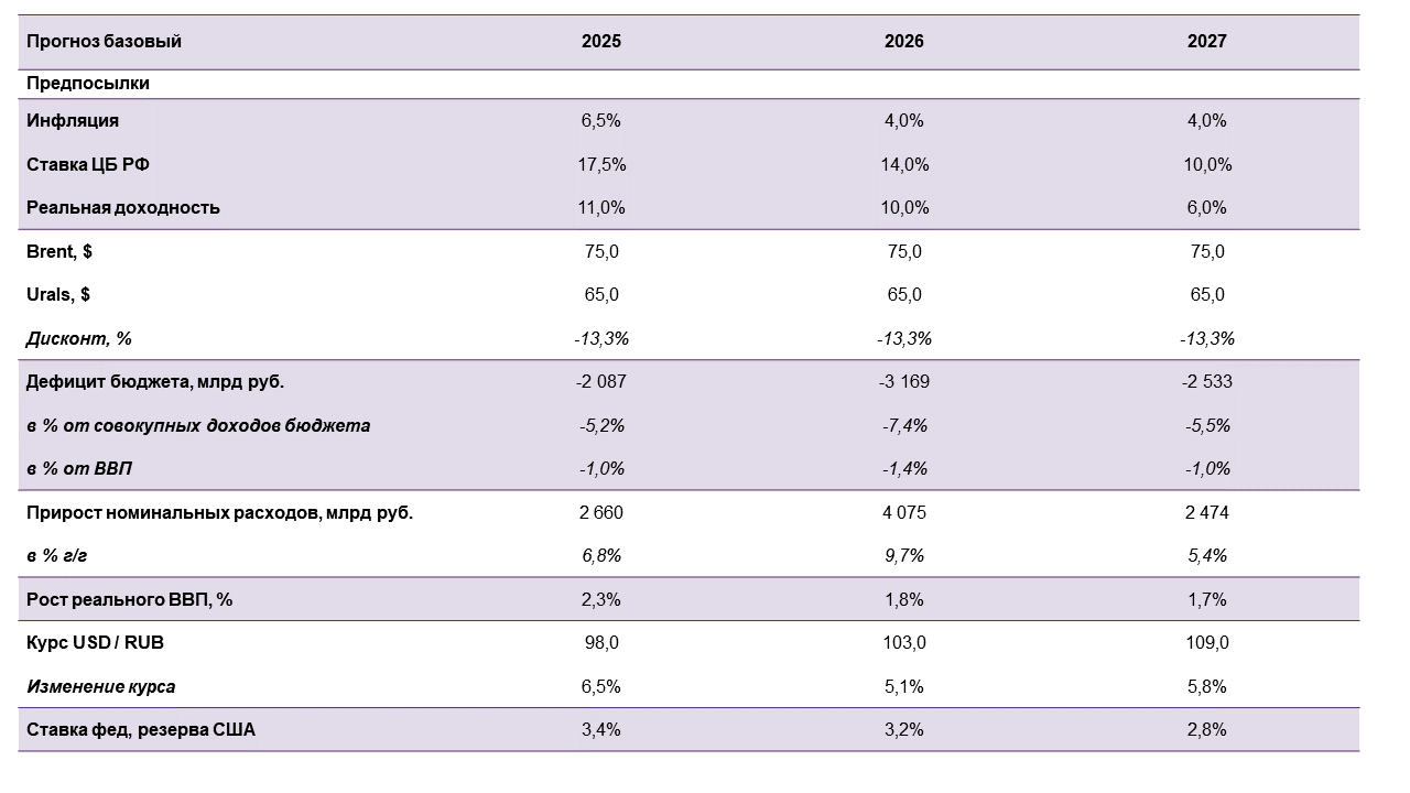 При анализе рисков и прогнозе доходностей на 2025 год, мы будем использовать следующие предпосылки базового сценария: